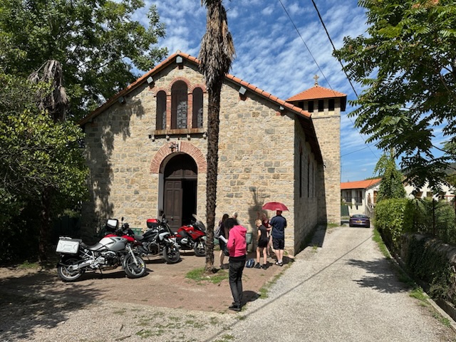 Post 20-9-2025In August our Branch Chair and Ringing Master (David Salter) joined other ‘Bellringing Motorcyclists’ for a trip to Vernet-les-Bains in France to ring the only set of bells in France rung in the English way. St Georges Anglican Church in Vernet-les-Bains was established in 1911 through funding including Rudyard Kipling and Queen Victorias daughter, Princess Beatrice. This was in response to the growing interest from wealthy English visitors in the early 1900s and Frances only monument to the Entente Cordiale of 1904. Vernet les Bains has a ring of 10 cast by Taylors and was installed in 2019 through the enthusiasm and drive of Geoff Ladd, an expat originally from Leeds. Geoff moved to Vernet-les-Bain and was instrumental in getting the project going and regularly runs a Ringing School for other expats and other local ringers that he has taught. During his brief visit David was joined by other visiting ringers from Catherington (Hampshire) and was able to ring several Quarter Peals and a Peal (details on Bellboard).